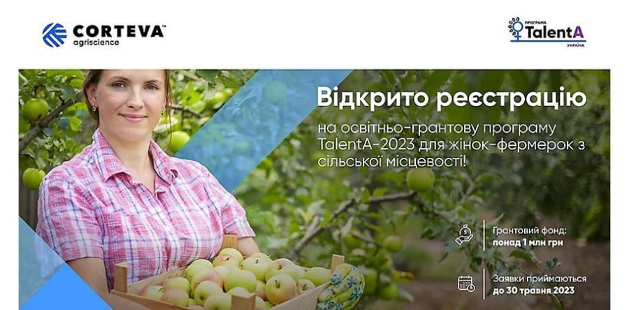 Триває реєстрація для участі в освітньо-грантовій програмі розвитку та підтримки талановитих сільських жінок-фермерок «TalentA-2023». Вона передбачає проведення навчального онлайн-хабу та грантового конкурсу мікропроєктів. Переможниці програми розділять грантовий фонд у понад 1 мільйон гривень, якій Corteva Agriscience виділяє для зростання власного бізнесу фермерок та соціальної підтримки їх громад. Реєстрація на участь в «TalentA-2023» розпочалася 8 березня та триватиме до 30 травня. Більше про програму – https://griml.com/0ppz4