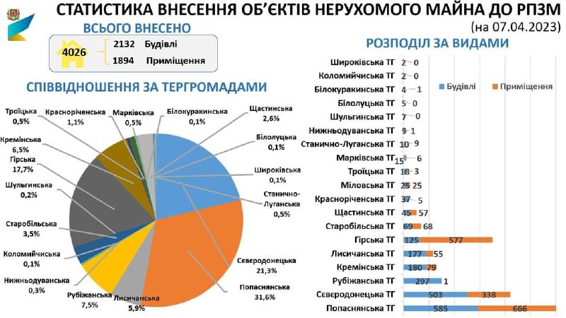 703 ІП не підлягають обробці (через дублювання, некоректні дані, зокрема щодо адреси, власника майна тощо). Усього до РПЗМ внесено 4026 об’єктів нерухомого майна, у тому числі 2132 будівлі, 1394 приміщення.