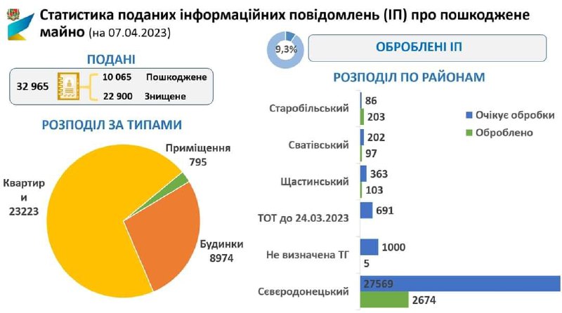 Станом на 7 квітня, громадянами області подано 32 965 інформаційних повідомлень про пошкоджене/знищене нерухоме майно.