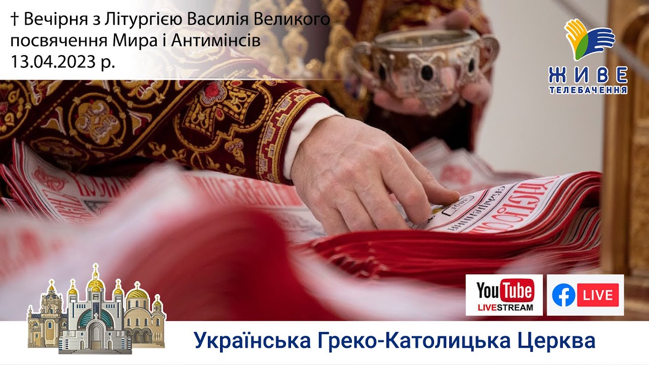 09:00 — Вечірня з Літургією Василія Великого, посвячення мира і антимінсів, Чин умивання ніг (пряма трансляція на Живому ТБ)