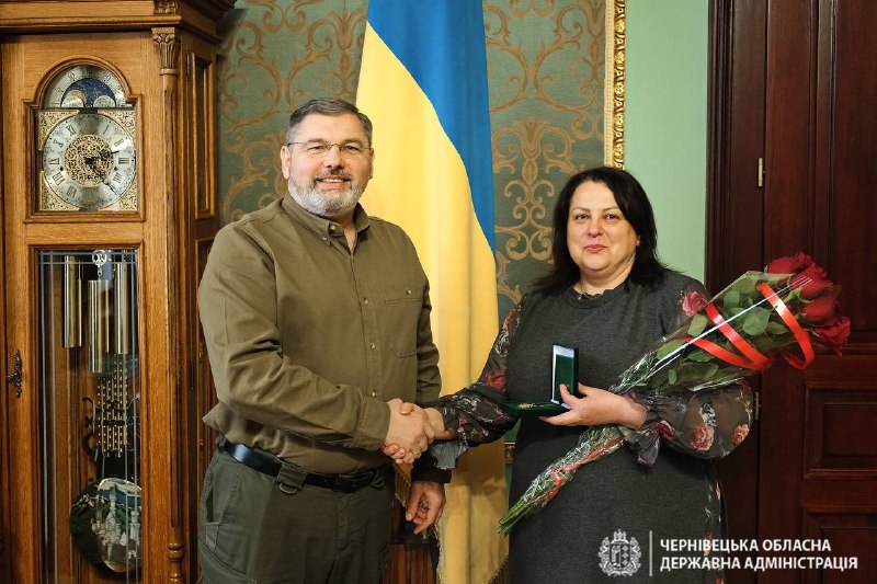 🏅За багаторічну сумлінну працю, високий професіоналізм та вагомий особистий внесок у розвиток освіти нагородив освітянку почесною відзнакою «Вдячна Буковина».