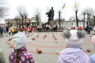 На площі міста були розкладені пасхальні кошики зі свічками в знак світлої пам’яті невинно вбитих дітей. На завершення присутні запалили свічки.