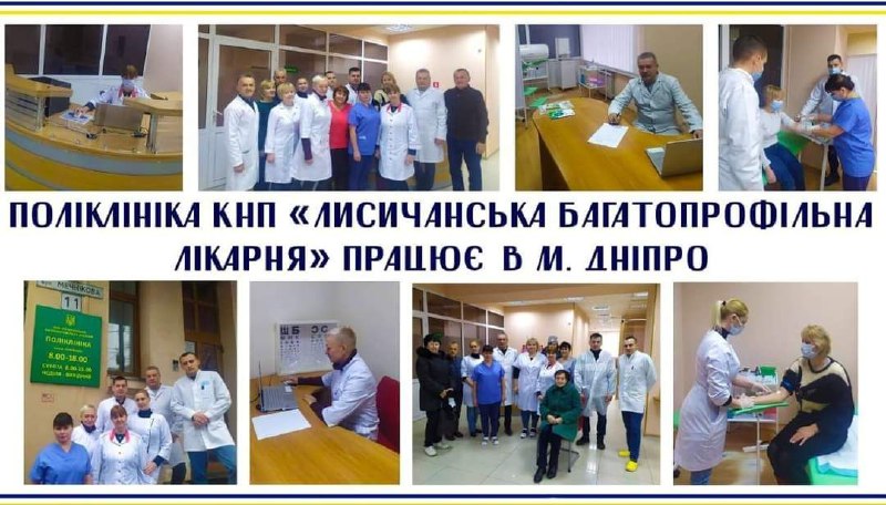 У поліклініці КНП «Лисичанська багатопрофільна лікарня» надають допомогу пацієнтам у м. Дніпро за адресою: вул. Мечнікова, 11 (правий берег, зупинка вул. Воскресенська).