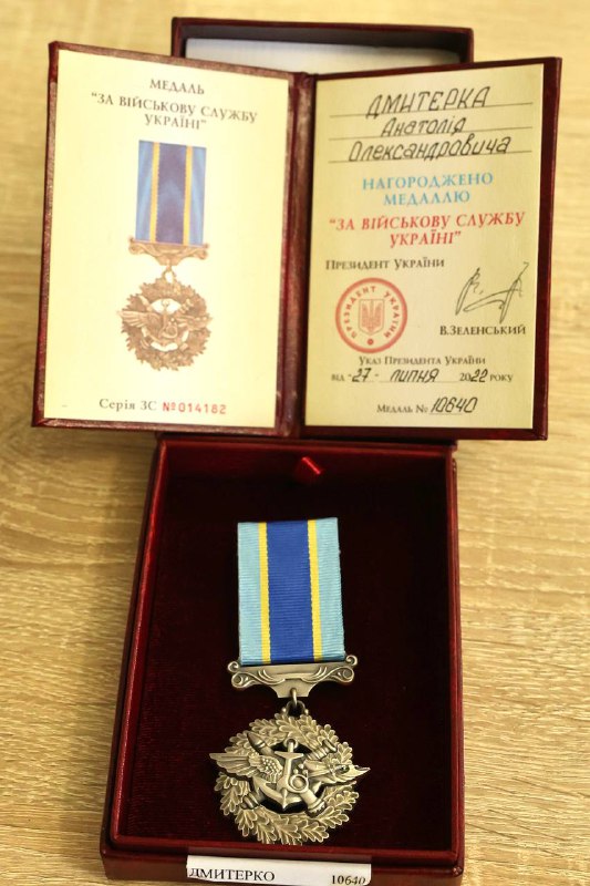 Вручив державну відзнаку - медаль «За військову службу Україні» старшому лейтенанту  Анатолію Дмитерку.