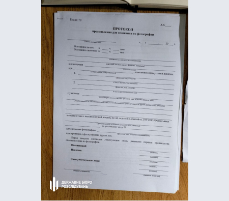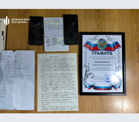 Під час проведення обшуків за місцем проживання підозрюваного працівники ДБР у взаємодії з СБУ вилучили документи, що підтверджують його службу на окупанта. Зокрема бланки протоколів та відібрання пояснень, складені відповідно до кримінального законодавства країни-агресора, записи щодо місцеперебування та політичних поглядів місцевих жителів.