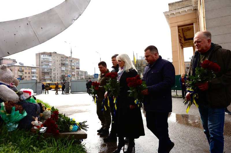 Разом з польською та чеською делегаціями відвідали місце трагедії, яка сталася внаслідок російського ракетного удару 14 липня минулого року по площі Перемоги.