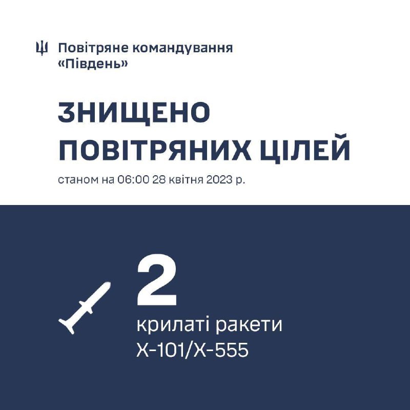 28 квітня 2023 року близько 4 годин ранку російські окупанти атакували Україну із літаків стратегічної авіації Ту-95 із району Каспійського моря.