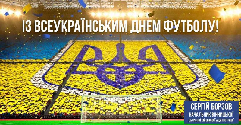 ⚽️Вдалих футбольних матчів, крутих фінтів та побільше голів у ворота суперника. 29.04.2023, Субота | 14:04 Автор допису: Голова Вінницької обласної військової адміністрації ⚽️Вдалих футбольних матчів, крутих фінтів та побільше голів у ворота суперника. 🇺🇦Зі святом усіх, хто грає й вболіває! Джерело Друк / PDF