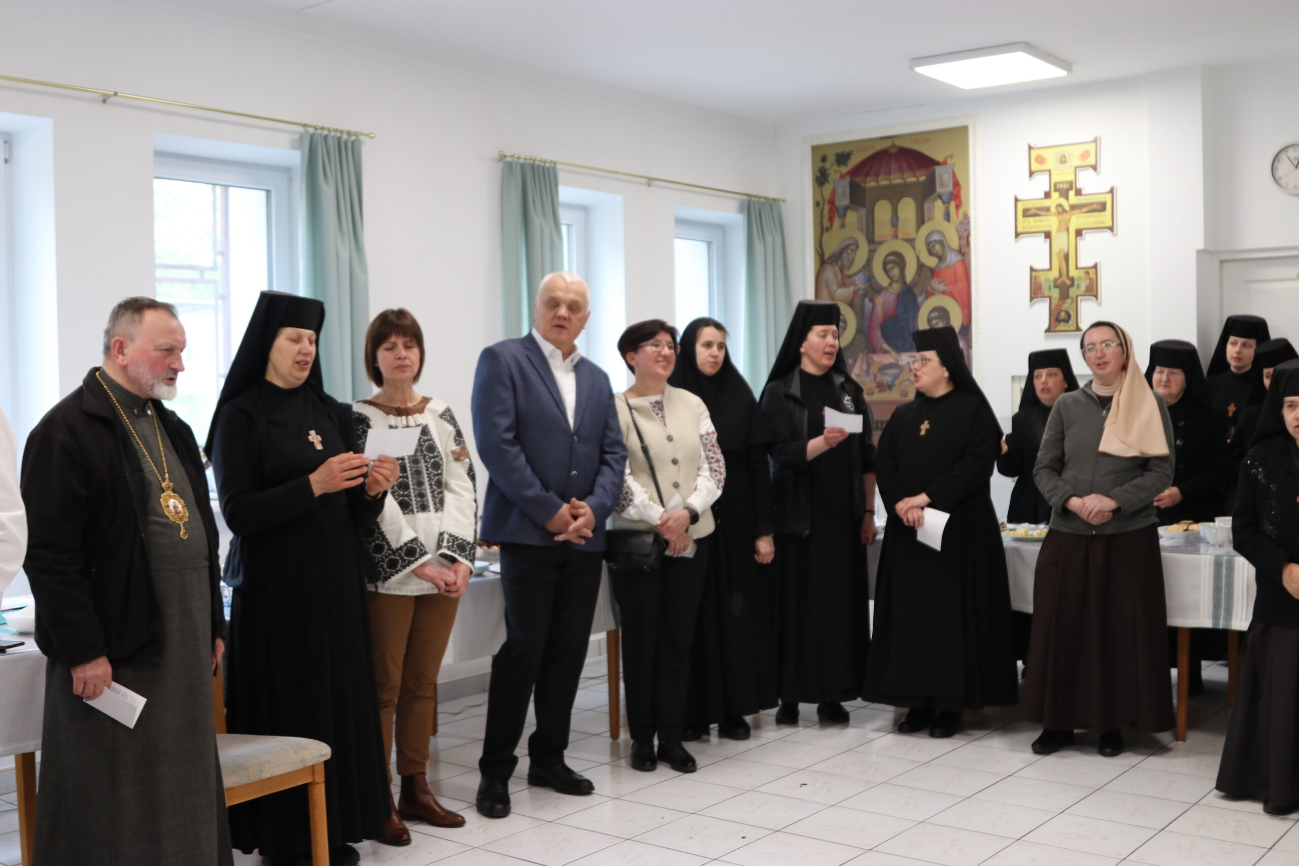 Опісля Божественної Літургії святкування продовжилося духовною програмою, під час якої сестри ділилися свідченням про свого засновника, а дві дівчинки — Оля і Софійка супроводжували програму співом християнських пісень.