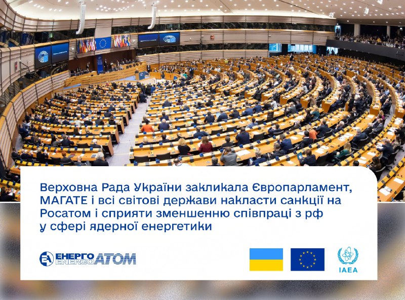 ⚠️ Український парламент звернувся до парламентів ЄС та усіх світових держав, а також до МАГАТЕ щодо накладення…
