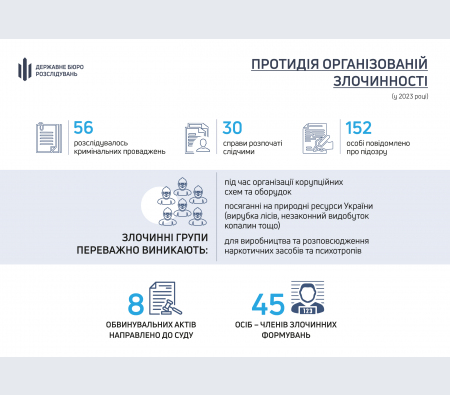Тільки з початку 2023 року ДБР розслідувало 56 кримінальних проваджень щодо злочинів, вчинених організованими групами та ОЗУ.