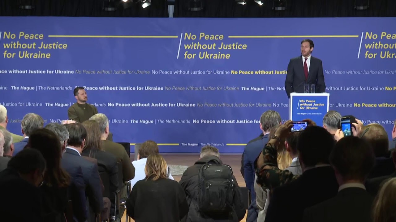 Виступ Президента України Володимира Зеленського перед представниками громадськості, політичних та експертних кіл Королівства Нідерланди і міжнародних інституцій, розміщених у місті Гаага.