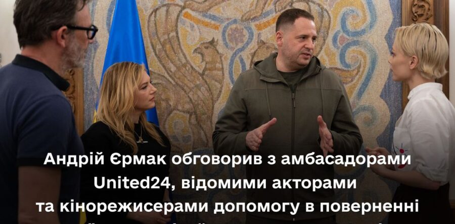 На виконання доручення Президента України Володимира Зеленського керівник Офісу Президента Андрій Єрмак провів низку зустрічей з амбасадорами фандрейзингової платформи United24, відомими акторами, кінорежисерами та продюсерами. Говорили про те, як сприяти поверненню на батьківщину українських дітей, незаконно вивезених Росією, а також підтримувати єдність світової спільноти навколо України.
