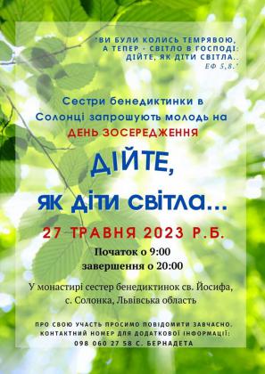 27 травня молодь запрошують до бенедиктинського монастися св. Йосифа у с. Солонка.