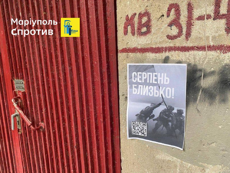 ✊Маріупольці чекають на звільнення! ☝️Жителі розвісили плакати з написами “Серпень близько" 10.05.2023, Середа | 15:50 Автор допису: Маріупільська міська рада ✊Маріупольці чекають на звільнення! ☝️Жителі розвісили плакати з написами "Серпень близько" по вулиці Італійській, біля міського саду. ⚓️Вони ще раз нагадали російським окупантам – маріупольці не хочуть залишатися під російським прапором, а чекають на ЗСУ та повернення до України! 🇺🇦 Джерело Друк / PDF