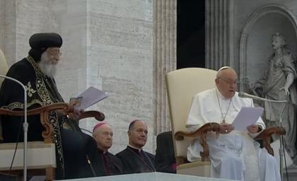 Хоча загальна аудієнція у середу, 10 травня 2023 р., мала незвичний формат, пов’язаний із візитом до Ватикану Глави Коптської Православної Церкви, але завершилася вона традиційно, тобто закликом до молитви за Україну.