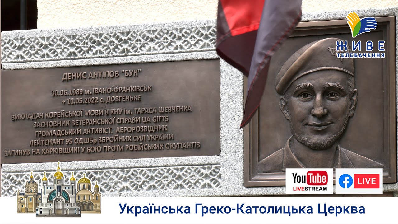 На Аскольдовій могилі встановили дошку пам’яті добровольця Дениса Антіпова. Рівно рік тому, 11 травня 2022 року, захисник героїчно поліг під Ізюмом, захищаючи Україну. Меморіальну таблицю на його честь освятив