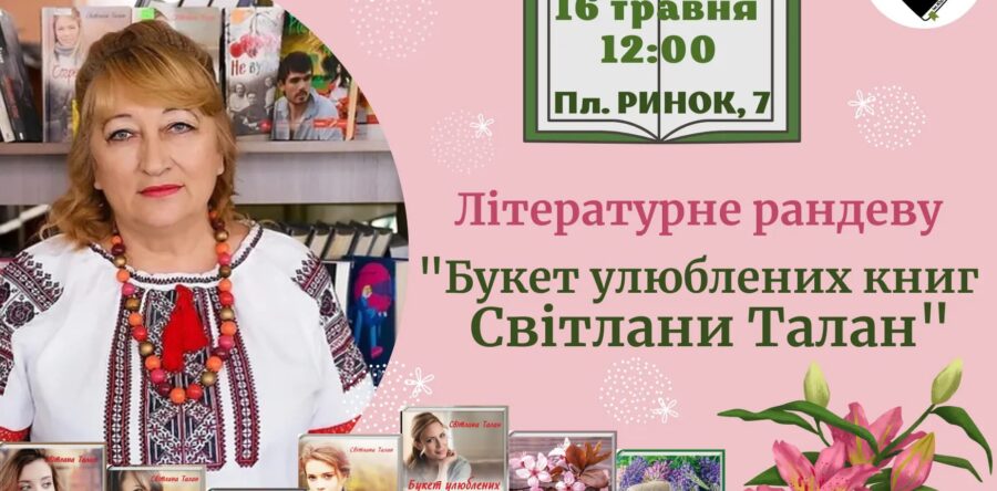Вперше у місті Яворові, у вівторок, 16 травня 2023 року о 12:00 у читальній залі Яворівської міської бібліотеки ім.Ю.Липи відбудеться літературне рандеву “Букет улюблених книг Світлани Талан”. Одна із найпопулярніших письменниць сьогодення, авторка понад 30 романів, володарка титулу “Золотий письменник України” – Світлана Талан приїде на Яворівщину.