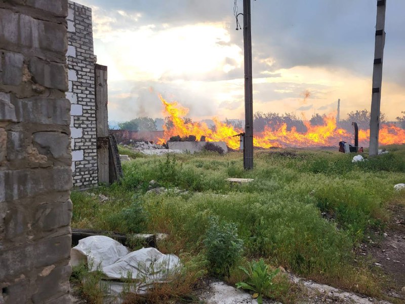 Через обстріл сталося займання трави, будівельного сміття та вторинної серовини на площі близько 800 кв м.
