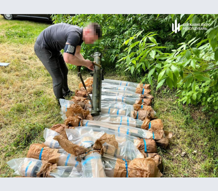 Працівники ДБР на території Харківської області знайшли ретельно замасковану схованку, у якій російські окупанти заховали реактивні штурмові гранати.