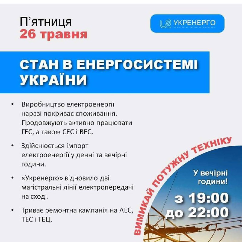 НАСЛІДКИ АТАКИ: нічна атака ракетами та дронами не призвела до пошкоджень електростанцій та магістральних мереж. Щиро вдячні ППО за збиті 10 ракет та 23 шахеда!