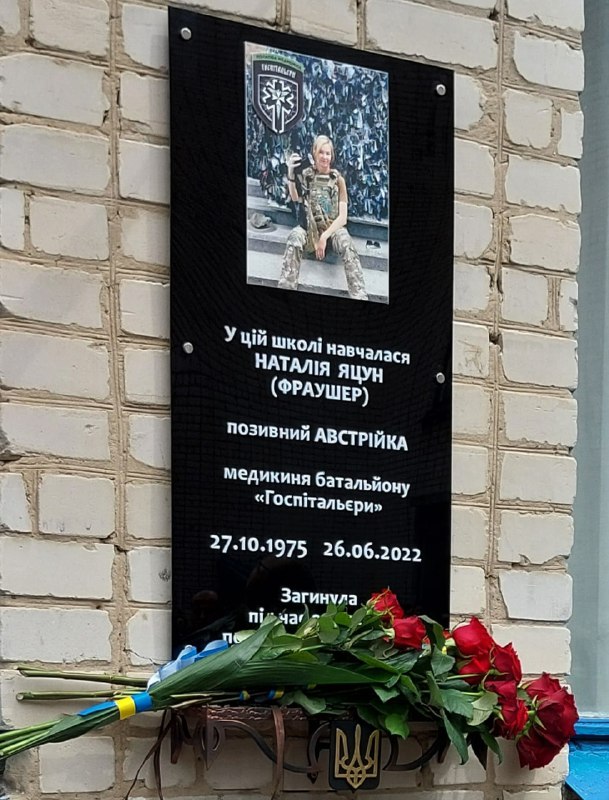 Сьогодні у Кропивницькій гімназії «Ерудит» (НВО №19) відкрили меморіальну дошку нашій землячці, справжній героїні – Наталії Фраушер (Яцун) з позивним «Австрійка».