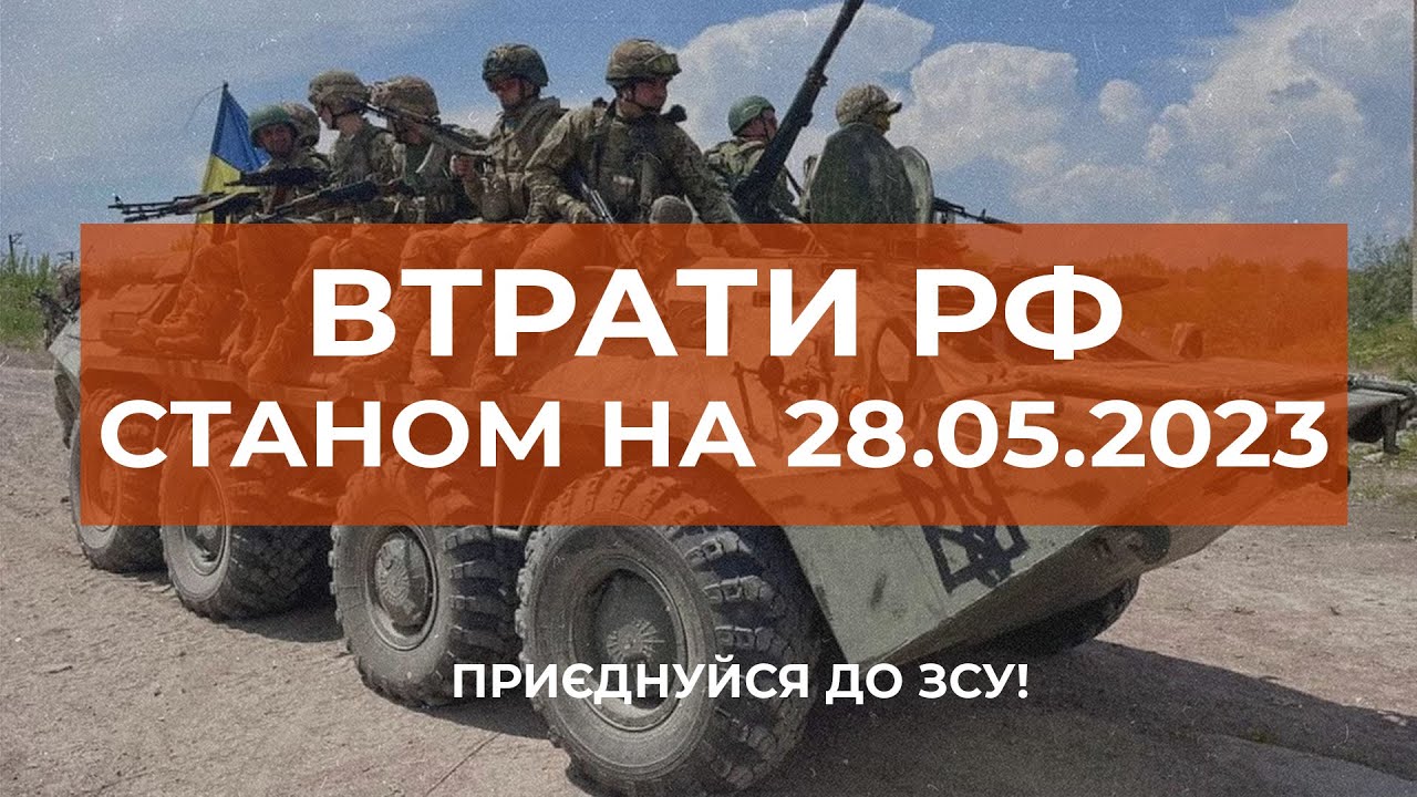 ⚡ ВТРАТИ РОСІЙСЬКОЇ АРМІЇ СТАНОМ НА 28.05.2023