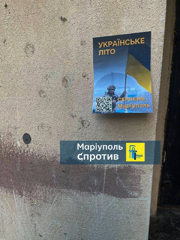 ☝️У різних районах міста можна побачити плакати з написами "Українське літо: серпень близько". Також зʼявилися написи "Маріуполь – це Україна" та з символом міського спротиву – літерою Ї.