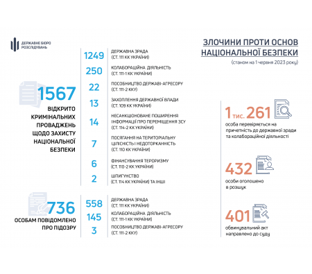 ДБР відкрило понад 1,5 тис. кримінальних справ щодо злочинів проти Нацбезпеки (ІНФОГРАФІКА)