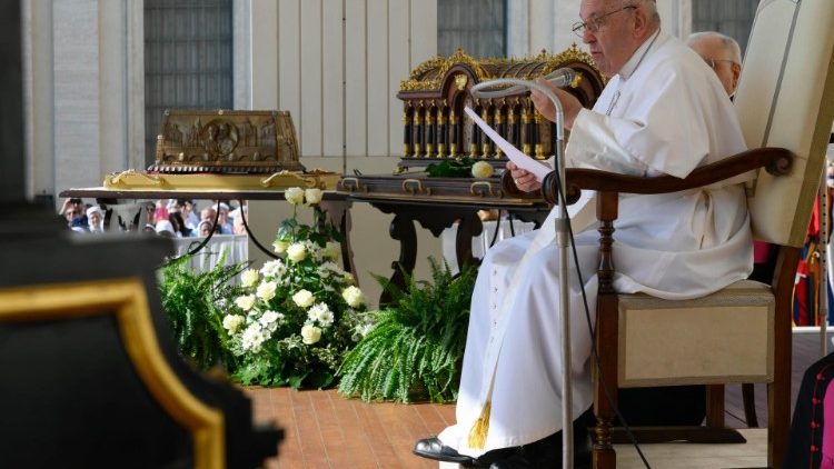 Покровителька місій, яка ніколи не була на місії, монахиня, яка покинула цей світ у 24 роки, маючи «місіонерське серце». Так Папа Франциск на початку загальної аудієнції в середу, 7 червня 2023 р., розпочав представлення чергової постаті в рамках циклу повчань, присвячених місіонерському покликанню охрещених. Йдеться про святу Терезу від Дитятка Ісуса, 150-річчя від дня народження якої припадає цього року і мощі якої цього дня були присутні на площі Святого Петра. Перед ними Єпископ Риму поклав білу троянду й зупинився на молитву, а також повідомив, що планує написати спеціального Апостольського листа з нагоди згаданого ювілею.