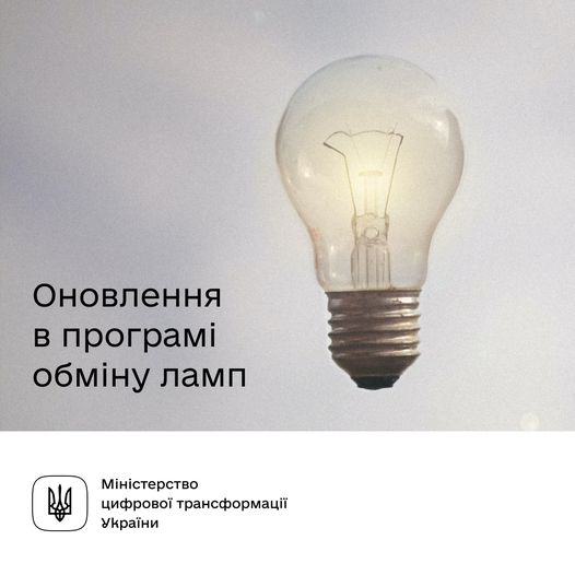 Українці вже обміняли мільйони ламп розжарювання на енергоощадні та допомогли знизити навантаження на енергосистему. Тепер програму ЄС та Уряду масштабують для юридичних осіб. https://diia.gov.ua/services/obmin-lampochok Скористатися послугою можуть: – освітні заклади – лікарні Щоб подати заяву про обмін ламп, потрібно: Авторизуватися на порталі Дія за допомогою КЕП юрособи / перейти в розділ — Послуги — Обмін лампочок / вказати площу установи та вибрати кількість ламп у межах ліміту / зазначити адресу організації / підписати запит КЕПом юрособи. Уважно перевірте інформацію про підприємство та контактні дані. Протягом тижня Укрпошта зв’яжеться з вами за вказаним номером телефону. Збережемо світло разом Програма Обміну лампочок підтримана Європейським Союзом у відповідь на заклик Президента Зеленського та реалізується Міністерство економіки України, Міністерством цифрової трансформації, АТ Укрпошта в усіх регіонах України, крім зони бойових дій та тимчасово окупованих територій. Програма, фінансована ЄС, є складником підтримки Європейським Союзом українського енергетичного фронту.