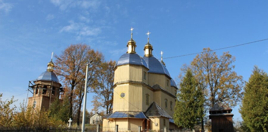 Церква Успення Пресвятої Богородиці у селі Середкевичі Яворівського району. В ореолі природної краси незвичайною відкрилася перед нами величава святиня. Висока, добротна, доглянута, вона викликала щирі емоції радості від усвідомлення збереженості спадщини віків, а ще – відчуття якогось незримого, як тепер кажуть, віртуального звʼязку поколінь. Розташована посеред села, на ділянці з невеликим ухилом, в оточенні дерев, навпроти мурованої каплиці св. Костянтина. Перша письмова згадка про Середкевичі відноситься до XVIII ст. За переказами, перше поселення виникло на місці вирубаних лісів і дістало назву Улицок. Коли почало розростатись, то мало вже 2 назви: Уліцок-Середкевичі й Уліцок-Зарубане. Уперше місцева церква згадується у документах 1578 року. У 1708 році коштом дідича Глуховського та громади села поставили попередню дерев’яну триверху церкву Успення Пресвятої Богородиці. У 1860 році в урочищі присілку Середкевичі збудована мурована каплиця Св. Костянтина, яка є усипальницею родини Скибневських. У 1893 році на місці давнішої церкви виставлена нова дерев’яна трибанна церква, завершена шоломовими банями на восьмериках. Під час Другої світової війни мешканці села закопали 6 дзвонів, які німці хотіли зняти. Церква стояла зачиненою з 1963 по 1989 роки. Тодішня влада мала намір використати храм як склад міндобрива, але люди чинили спротив і не дозволили плюндрувати святиню. Та все ж два роки в радянський час будівля церкви слугувала зерносховищем. За свідченнями очевидців, старі церковні двері було порубано, але мешканці села забили вхід дошками й щоночі чергували, не дозволяючи занедбати церкву. Поновна церква відкрита в 1989 році на Йорданські свята. Раніше церква була у підпорядкуванні Потелицького деканату, а після Першої світової війни належить до Немирівського деканату. Вже у 1990 році громада добротно відремонтувала храм ззовні, а у 2001 році було здійснено внутрішній ремонт, розмальовано стіни. Під час ремонту в 2007-2008 роках дахи перекрили металізованою бляхою. Тризрубна церква складається з ширшого квадрата нави, до якого зі сходу прилягає вужчий гранчастий вівтар з двома прямокутними захристія по боках, а із заходу – прямокутний рівно широкий бабинець з таким же пізнішим присінком при західній стіні. Споруда оточена піддашшям, завершена трьома шоломоподібними банями, поставленими на світлові восьмерики, увінчані сліпими ліхтарями з маківками. Стіни шальовані вертикально дошками і лиштвами. Неподалік від храму (на північний захід) стоїть деревʼяна двоярусна стовпова, квадратна в плані дзвіниця, накрита шатровим верхом. За переказами, будуючи дзвінницю, громада села використала бруси з церкви, яку розібрали, щоб звести значно більший храм Успення Пресвятої Богородиці, що й до наших днів є окрасою села та околиці. Сьогодні храм зачаровує своєю красою та доглянутістю. Настоятелем храму є отець Василь Милькус. Перебуваючи у селі, обовʼязково відвідайте колоритний об’єкт культурної спадщини Яворівщини.