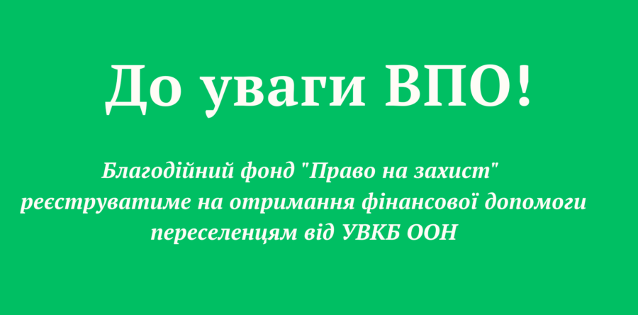 (Детальна інформація щодо отримання грошової допомоги від УВКБ ООН через офіси БФ «Право на захист» на офіційному сайті https://r2p.org.ua/rozshyreno-kryteriyi-lyudej-shho-mozhut-otrymaty-dopomogu-vid-uvkb-oon/