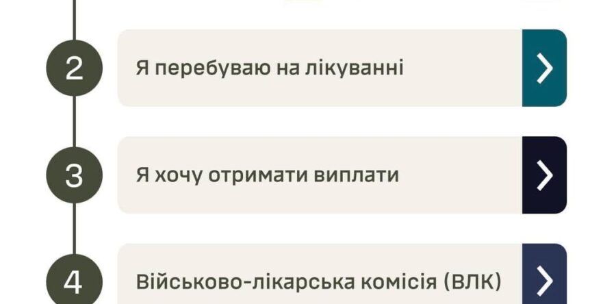 https://turbota.mil.gov.ua/ Тут є алгоритми дій пораненого, зразки рапортів та покрокові інструкції отримання виплат, протезування, отримання статусу УБД, посвідчення особи з інвалідністю тощо. Гаряча лінія Міністерства оборони України: 0800 500 44Джерело: Сили територіальної оборони ЗСУ