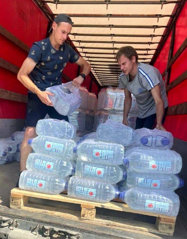 Цю систему продовжуємо налагоджувати у всьому районі, який потерпає через обміління Каховського водосховища. Загалом там працюють понад 60 водовозів. Туди вже прибуло 24 цистерни – по 60-70 тонн кожна. Бутильовану воду щодня передають благодійники.