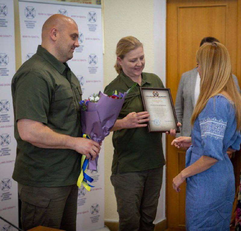 З профільним міністром Юлією Лапутіною зустрілися й з тими, хто наближав і продовжує наближати нашу перемогу. Це ветерани та волонтери. Всі вони допомагають оборонцям, які нині на передовій. Відзначили їх вітальними листами та сувенірними монетами.