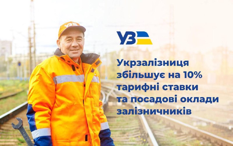 📈Укрзалізниця з 1 липня підвищить на 10% тарифні ставки та посадові оклади залізничників.