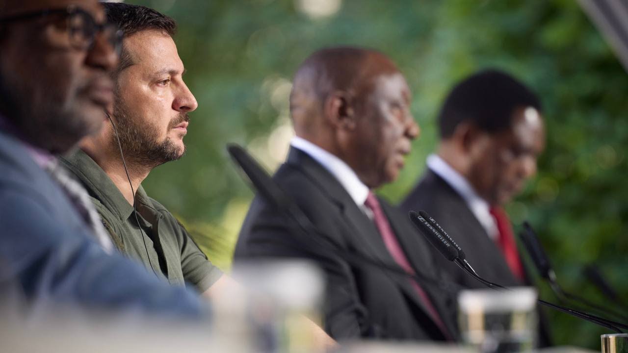 Володимир Зеленський зробив заяву для ЗМІ після зустрічі з африканською делегацією. До її складу увійшли Президент Союзу Коморських островів Азалі Ассумані, Президент Південно-Африканської Республіки Сиріл Рамафоса, Президент Республіки Сенегал Макі Саль, Президент Республіки Замбія Хакаінде Хічілема та Прем’єр-міністр Арабської Республіки Єгипет Мустафа Мадбулі.