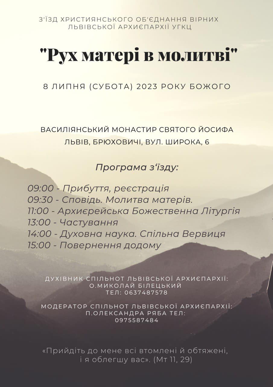 8 липня відбудеться з’їзд християнського об’єднання вірних Львівської Архиєпархії УГКЦ «Рух матері в молитві».