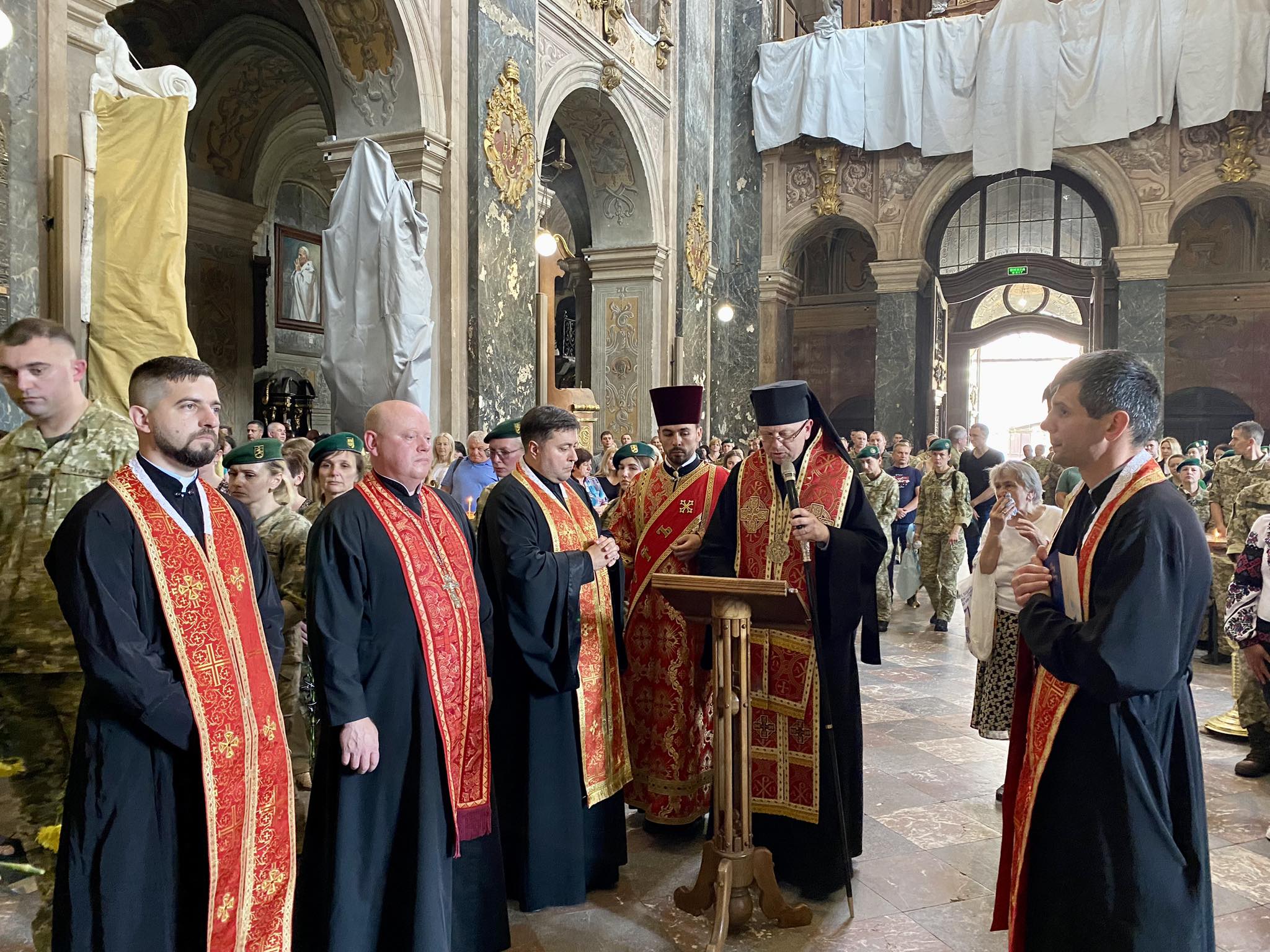 Дякуємо дружині, доньці, брату і єднаємося у молитві», — сказав владика Володимир, зачитуючи біографію загиблого Захисника.