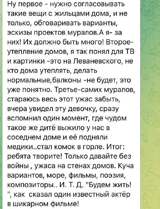 ☝️На будинку по проспекту Металургів, 123 російські окупанти створюють мурал. На ньому поки що намальована дівчина у якої йдуть червоні смуги від очей. Що це за дівчина та який буде фінальний варіант – на місцевих ресурсах ще не повідомляють. Але місцеві жителі вже обурені, як самим малюнком, так і тим, що їх навіть не спитали про доцільність його створення. Більш того, будинок на якому роблять малюнок постраждав від російських обстрілів. А тепер загарбники цинічно "приховують" свої злочини муралом.