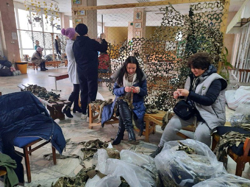 На Рівненщині волонтерством займаються Валерій Коншин з дружиною. У Хмельницькому наші маріупольчанки також розпочинають день з плетіння маскувальних сіток для військових.