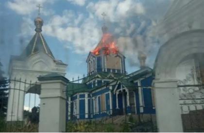 Окупанти опублікували фото пожежі, на якому видно, як купол храму зайнятий вогнем. Попри це, у місті не було кому гасити пожежу, оскільки цивільні служби і рятувальники були відсутні. Про це пише sobor.com.ua з посиланням на freeradio.com.ua