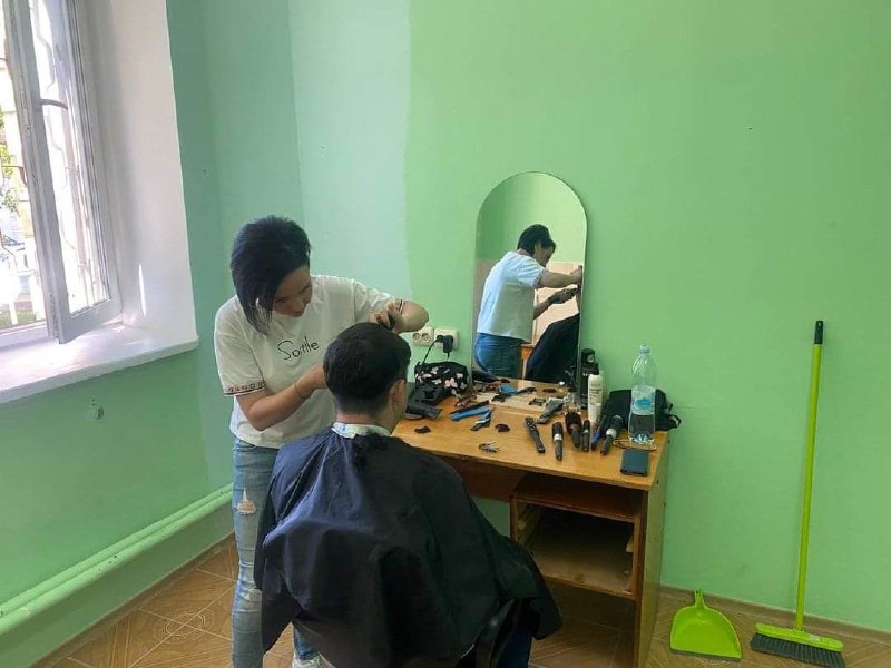 На базі місцевого Білокуракинського координаційного центру надання допомоги внутрішньо переміщеним особам з Луганської області облаштоване місце для роботи перукаря.