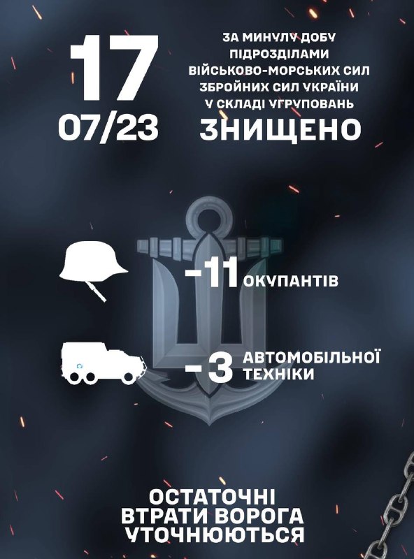 Минулої доби, підрозділами ВМС ЗС України знищено 11 окупантів та 3 одиниці автомобільної техніки.