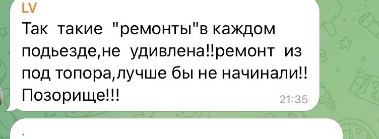 "Нешановні підрядники, це що за нові цілі в ремонті ви освоюєте – як зламати те, що витримало військову агресію з 2022 року?" – обурюються мешканці будинку.