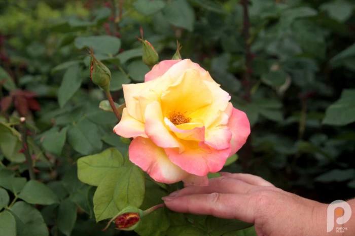 "Ми шукали найкращі троянди в Україні, й мені порадили звернутись до маріупольского господарства. В них були представлені найкращі європейські сорти троянд. Ми замовили п’ять сортів троянд з Маріуполя, які зараз займають майже всю найбільшу клумбу ліворуч від вхідної брами у двір», – розповіла пані Тетяна.