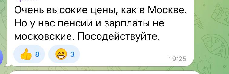 «Дуже високі ціни, як у Москві. Але в нас зарплати не московські», «Як можна вижити на мізерну зарплатню або пенсію?», "У багатьох роботи немає і що робити?"