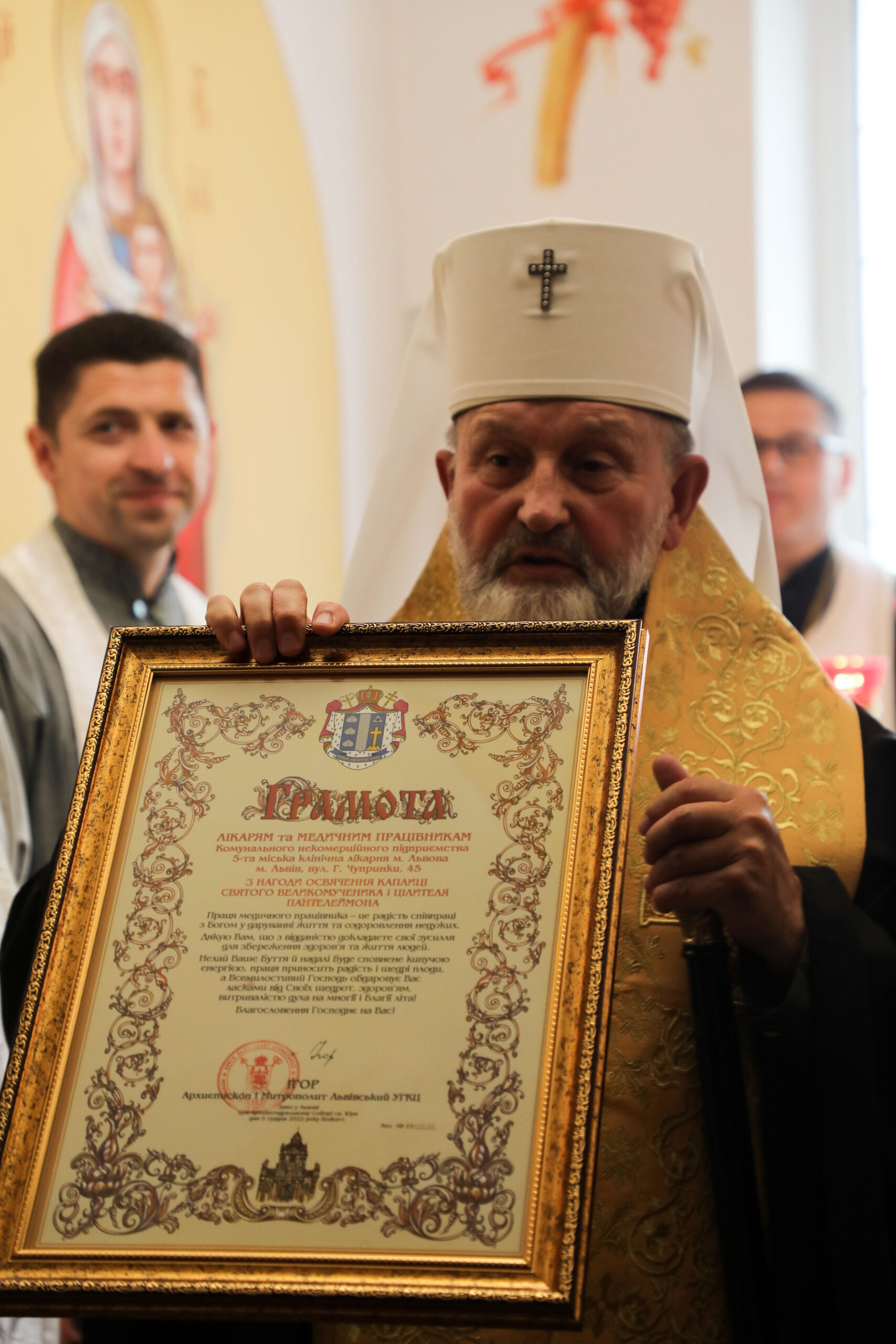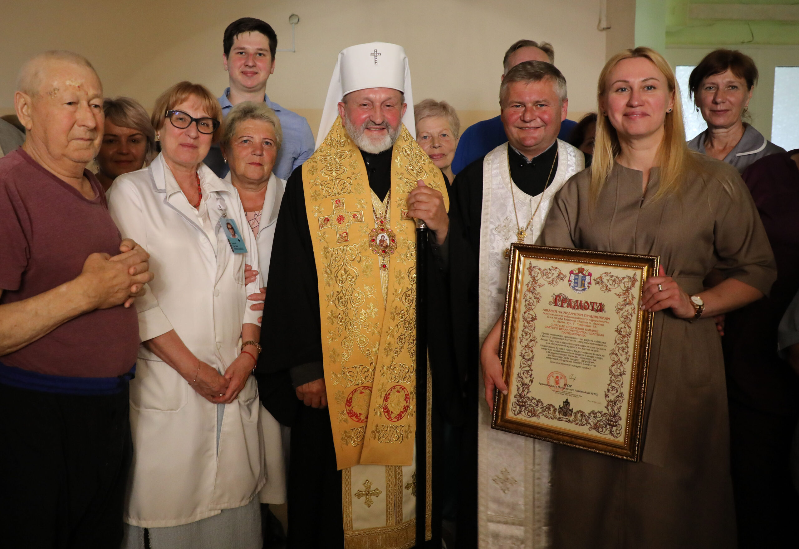 Також із нагоди освячення каплиці Митрополит вручив подячну грамоту лікарям та медичним працівникам цієї клінічноної лікарні. У ній зокрема йдеться: