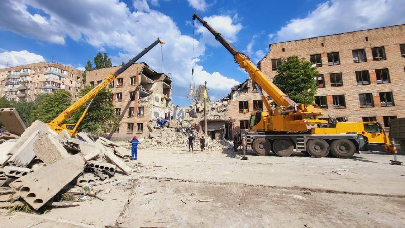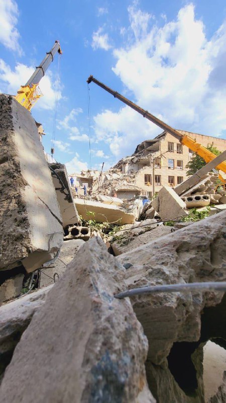 Загинула жінка, яка працювала тут. Її діставали з-під завалів. Вона стала шостою за сьогодні жертвою російських вбивць.